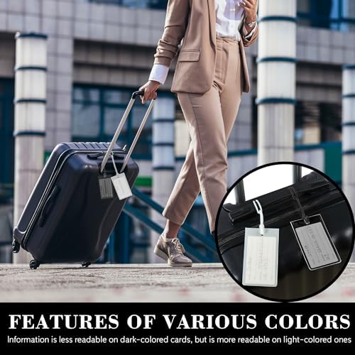 Perfect Size:Designed with the perfect dimensions of 4.2 x 2.5 inches, our luggage tags feature a 3.5 x 2.26-inch information card slot, making it easy to swap in your business card or personal details for added convenience