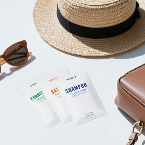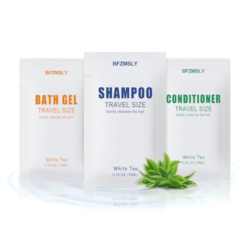 100 Set Travel Size Toiletries Set, Shampoo, Body Wash, Conditioner (0.35oz Each, 3-in-1 Toiletry Kits, White Tea Scent) – Bulk Hotel Amenities for Guests, Airbnb, Motels, Vacation Rentals