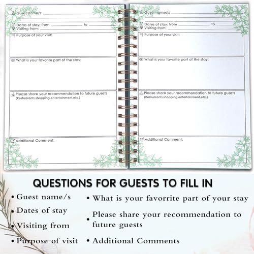 [Comprehensive Recording] The visitor guest book for airbnb with space to record guests’ names, check-in dates, purpose of visit, activities during their stay, and recommendations for future guests, our guest book for AirBnB allows you to create a personalized and memorable experience for each visitor