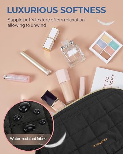 【Sophistication with Comfort】- Made from soft and luxurious taslan fabric, this cute and puffy makeup bag showcases a laid-back vibe that effortlessly complements your beauty routine. The supple texture of cosmetic case adds an element of relaxation to your daily rituals, allowing you to unwind and enjoy the process of getting ready