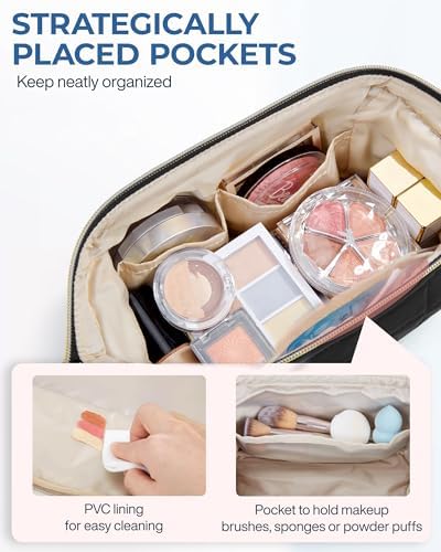 【EASY-CLEAN POCKET】- This well-crafted make up bag features dirt-proof pockets with PVC lining to hold your makeup brushes.Travel cosmetic bags for women ensure that your skin care and beauty products remain protected and spill-proof. Perfect for women who are always on the go