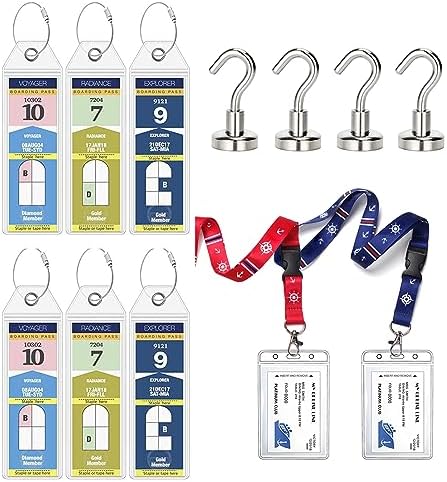 This set of cruise travel essentials includes various items, each with its own unique size. The luggage tags in this set measure approximately, providing ample space for all your identification details. The ID badge holders are approximately , which is just the right size to hold your cruise ID and other important cards. The cruise lanyards are approximately, long enough to fit comfortably around your neck. Whether you need to identify your luggage or keep your ID and cards close at hand, this set has the perfect sizes for all your needs.You can take these excellent magnetic hooks to the cruise for hanging and decorations on the metal wall or metal door in the cruise cabins of your carnival cruise ship. This strong magnet hook is a cruise necessity and one of the cruise accessories must-haves.