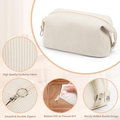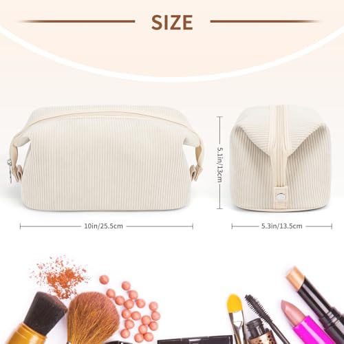 PORTABLE COSMETIC BAG: The travel cosmetic bag is made of high-quality cotton corduroy fabric, ensuring a comfortable touch without causing any friction or discomfort to your skin. Makes your carrying effortless, perfect for travel, vacations, dates, parties, business trips, amusement parks, hiking and other occasions.
