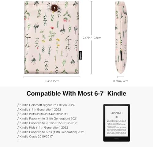 MoKo 6-7 Inch Embroidered Daisy Padded Sleeve Pouch for Kindle 11th Gen 2022/10t…
