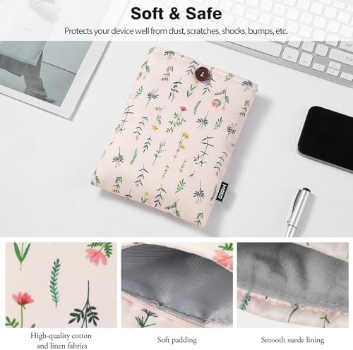 【𝐄𝐱𝐪𝐮𝐢𝐬𝐢𝐭𝐞 𝐄𝐦𝐛𝐫𝐨𝐢𝐝𝐞𝐫𝐞𝐝 𝐃𝐚𝐢𝐬𝐲 𝐓𝐞𝐱𝐭𝐮𝐫𝐞】- The two-tone kindle sleeve is embroidered with the fine bloomy daisy texture, which offers an elegant and stylish look while giving a soft touch and ensuring not easy to fade. It is also equipped with a matched button for easy access and secure closure. Say goodbye to the troublesome zipper operation and complement a chic decoration for your kindle bag.