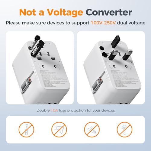 Note: The universal plug adapter is not a voltage converter, make sure your device supports 100V to 250V dual voltage; If you plan to use a hair dryer, straightener, or curling iron on the universal travel plug adapter, ensure they support dual voltage