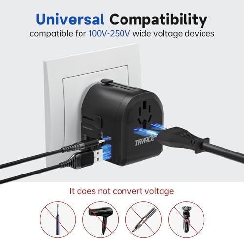 Wide Compatibility :This adapter is compatible with a voltage range of 100-250V, making it suitable for most dual-voltage electronic products. NOTE: DOES NOT CONVERT VOLTAGE. Not suitable for single-voltage devices such as hair dryers and curling irons.