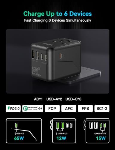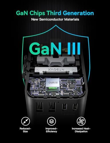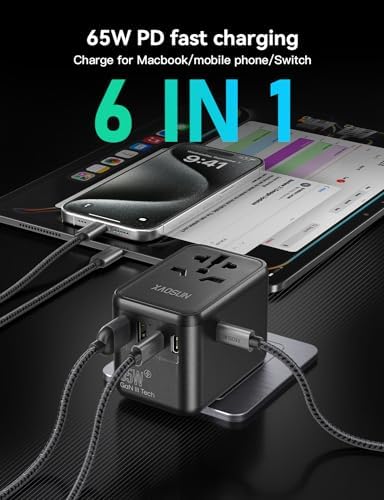 XAOSUN Universal Travel Adapter, 65W GaN Travel Plug Adapter, International Char…